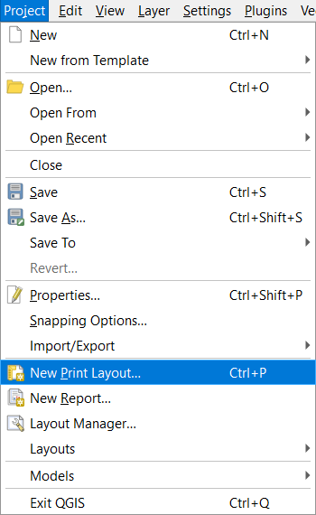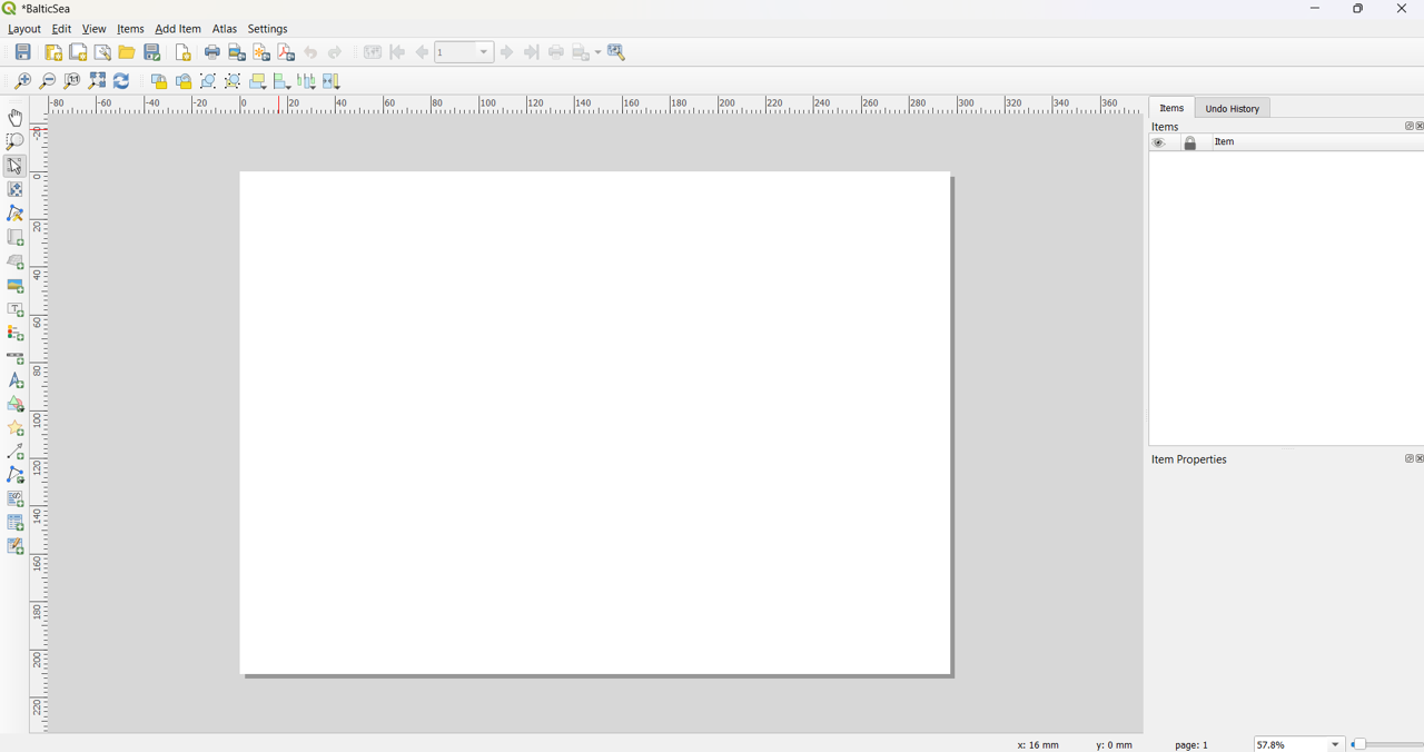 Navigate to Project > New Print Layout. A dialog box will appear. Assign a name to the layout, for this example, it is Baltic Sea.