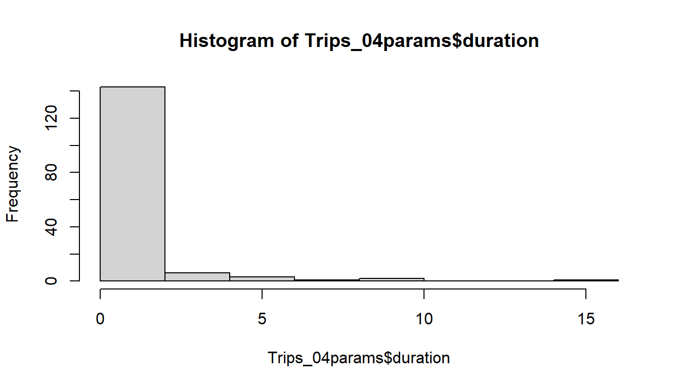 range(Trips_04params$duration)[1] 0.0000 14.4175